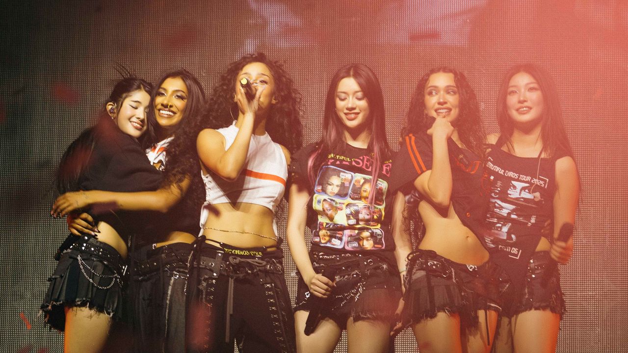 Those moments demanded a tour—and a tour wardrobe—that would solidify Katseye’s place in the ever-churning pop landscape. Happily, they have an excellent creative team behind them. “We wanted to celebrate their duality,” the group’s creative director, Humberto Leon, told Vogue of their stage looks. Leon, a co-founder of Opening Ceremony, worked with stylist Katie Qian to dress the six members in looks that both felt in harmony with one another and that show off their individual personalities. For help, Leon and Qian turned to brands like Guvanch, Brooklyn’s LVDF, and Adidas, which provided custom boots.